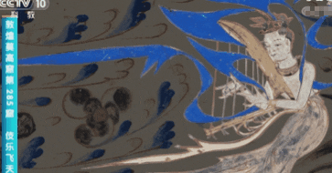 这是西魏时期的莫高窟285窟弹箜篌的飞天,这种手抱乐器的飞天叫伎乐飞天,是我们在敦煌石窟里见到的最多的飞天形象。