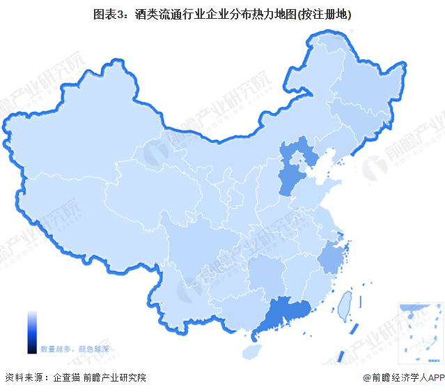 酒类流通产业链区域热力地图:广东地区酒类流通企业最多