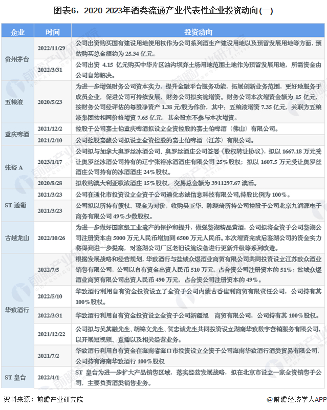 酒类流通产业代表性企业最新投资动向