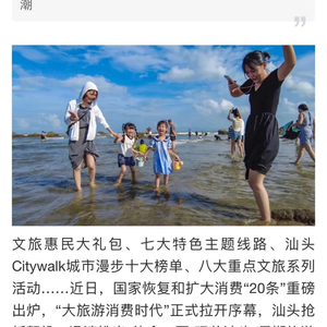 汕头正不断出奇招、见奇效,提升文旅品质,展现城市魅力,激发文旅市场新活力,打造文旅消费新爆点,从“假日”到“平日”,从“暑期热”到“持续热”,引客前来拥抱“诗与远方”,让大家乐意来、留得住、玩得欢、体验佳,让汕头旅游“热力”更加持久。