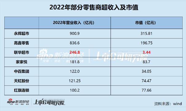 零售商超江湖|联华超市连亏9年:从商超龙头到股价3毛 市值3.4亿不及同行零头
