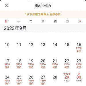 另外,记者看到,在福建厦门中山路的多家经济型酒店,平时房型预订最低价在200元左右,国庆期间,价格涨至上千元。如中山路步行街一家经济型酒店,平时大床房最低价为250元,国庆期间,涨至1181元。
