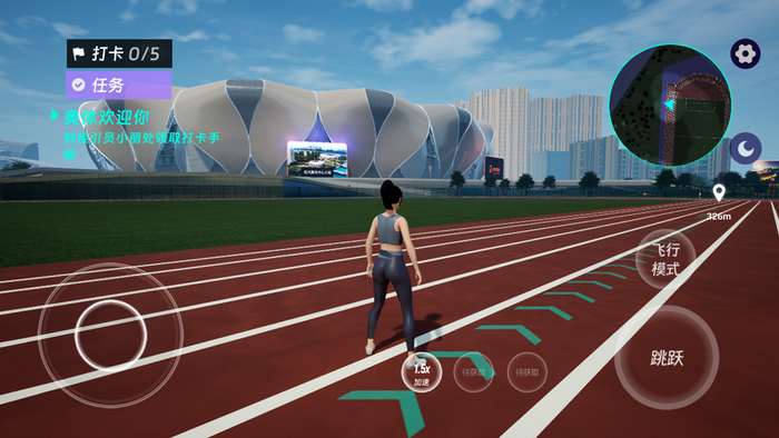 基于5G、AI人工智能、数字孪生、实时云渲染、V/AR等技术,“元上奥体”具有高精度、高清晰度、高还原度、低时延等特点。进入最新版本的“元上奥体”虚拟园区并选择角色后,用户可以在5个不同点位完成相应任务,完成五站打卡后,便可获得电商优惠券等奖品。