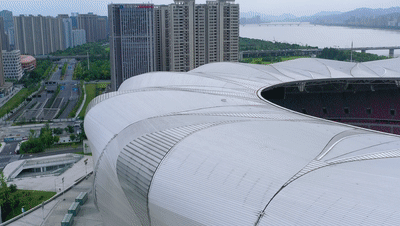 奥体园区包含多条主干道、平台、出入口以及水流,空间设计还需要将周边同为亚运场馆的“玉琮”“化蝶”,还有地标式建筑“杭州之门”等景观考虑在内。