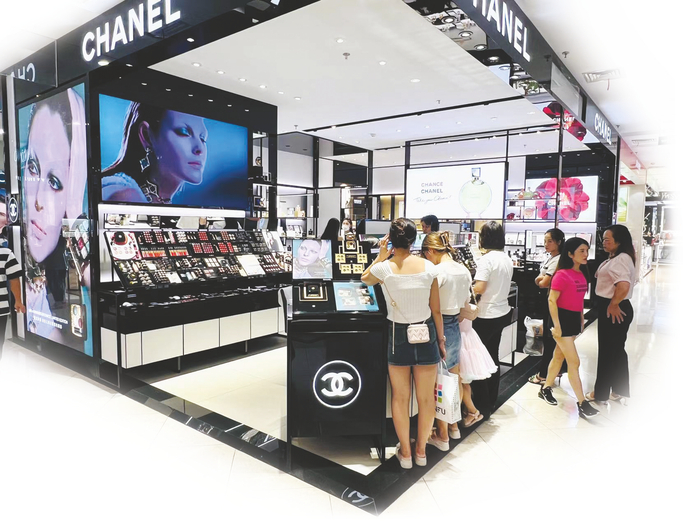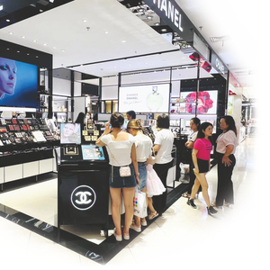 南宁百盛化妆品区吸引顾客选购