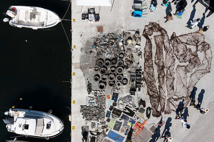 2023年6月4日,希腊弗利哈达海滩,非政府组织Aegean Rebreath在圣托里尼岛的Vlychada港口收集的海洋垃圾。
