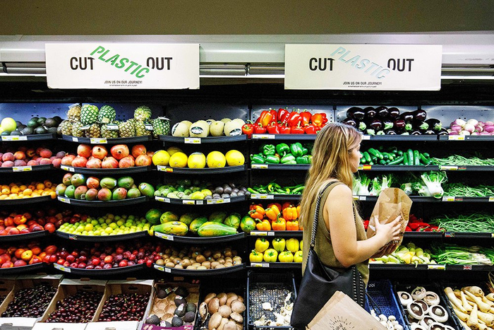 2019年7月2日,英国伦敦,当地超市尝试无塑料售卖商品。迫于环保消费者的压力,大牌超市开始采取措施,将货架上产品的塑料外包装拆下,这样做是为了不再让海洋有那么多垃圾污染。