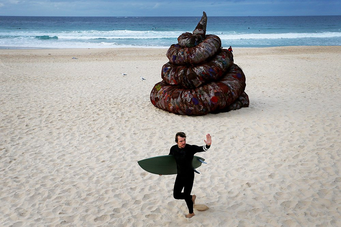 2023年6月5日,澳大利亚悉尼邦迪海滩,Better Packaging公司推出的名为"塑料垃圾"的雕塑。这个四米高的雕塑由回收塑料制成,看起来像人类的粪便。这个雕塑的设计是为了引起人们对每30秒倾倒在世界海洋中的塑料量的关注。
