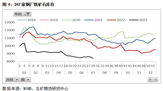 上半年铁矿库存处在合理区间,若下半年供需格局转宽松之后,港口库存将大幅累积至2021年末水平。好在今年钢厂库存始终不高,不会发生甩货主动去库存行为。