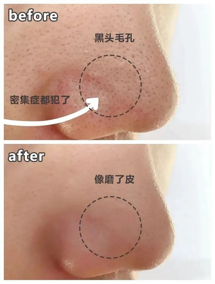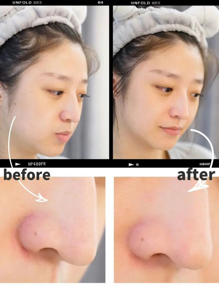 附上真人使用案例:很明显的就能发现,原来使用者的“轻微草莓鼻”变干净透亮了!