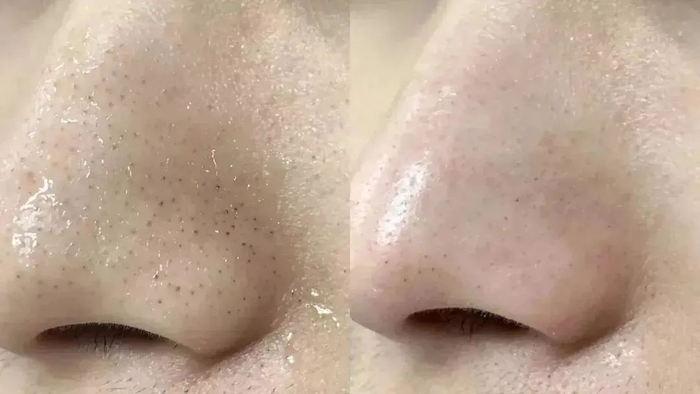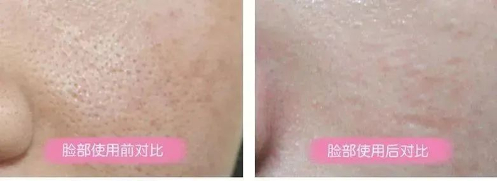使用前的皮肤白头、黑头一大堆,但使用后侧面脸颊上的大毛孔都变小了,甚至毛孔隐形,肌肤看起来光滑又干净!
