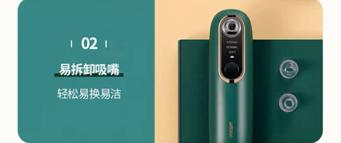 小贴士:使用时要确保吸头紧贴皮肤,切勿留有缝隙,否则吸不干净哟!