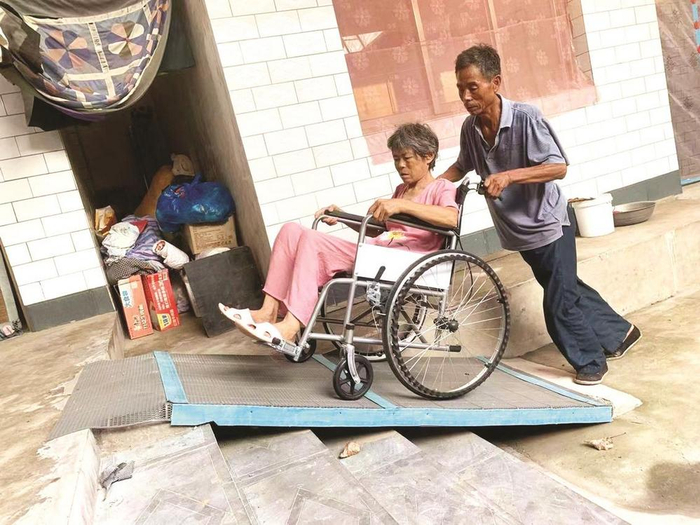 磁县民政局为王合芹老人量身制定专属改造方案,设置了防滑坡道。
