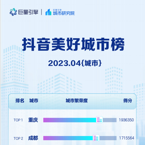 近日,抖音旗下巨量引擎城市研究院发布《2023 年中国城市夜间经济发展报告》,报告显示,2023年中国夜经济繁荣度 TOP100 城市主要分为三个梯队, 重庆夜间经济繁荣度位列第一梯队,重庆连续20多个月排名抖音美好城市榜全国第一。