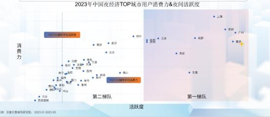 从消费力来看,一线城市夜间吃喝玩乐消费倾向显著,新一线用户消费力更强,重庆夜间消费力排名第八。