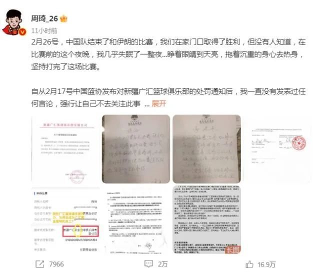随后,球员周琦在发长文回应,表示新疆男篮高层常年对其欺压蒙骗,此前在国家队集训和比赛期间收到恐吓电话。