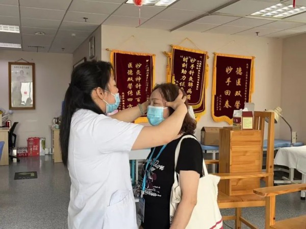 医院为不同的体验项目安排不同的志愿者,体验活动开始前,参与者们根据各自的需求和喜好,选择不同的体验项目,志愿者们分组带领大家去到不同的体验场所。体验项目丰富多样,覆盖了中医治疗项目、理疗和颈肩腰腿痛手法治疗。中医体验项目主打“冬病夏治”,包括点穴、拔罐、耳穴、搭脉、养生指导,让体验者亲身感受中医养生的独特魅力;理疗则通过中医定向药透、冲击波、经颅磁等专业设备,为体验者缓解疲劳和头晕等不适症状;颈肩腰腿痛手法治疗则受到很多上班族的喜爱,有效改善了上班族由于久坐办公导致的身体姿势不良而引起的各种不适。
