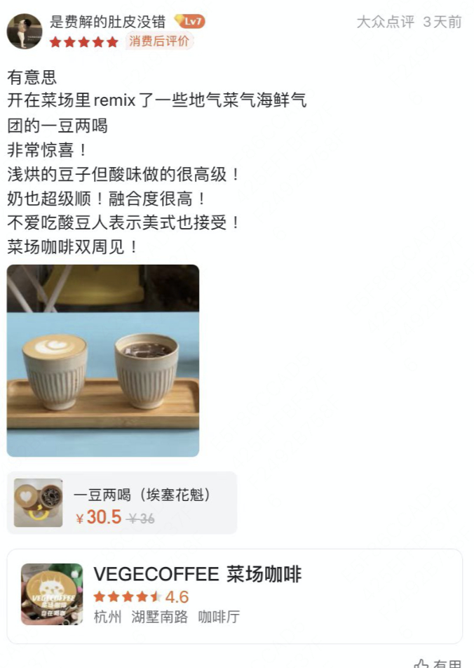 ▲大众点评上,咖啡爱好者因为一间咖啡店爱上了菜市场。(图源:大众点评)
