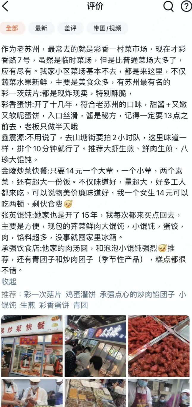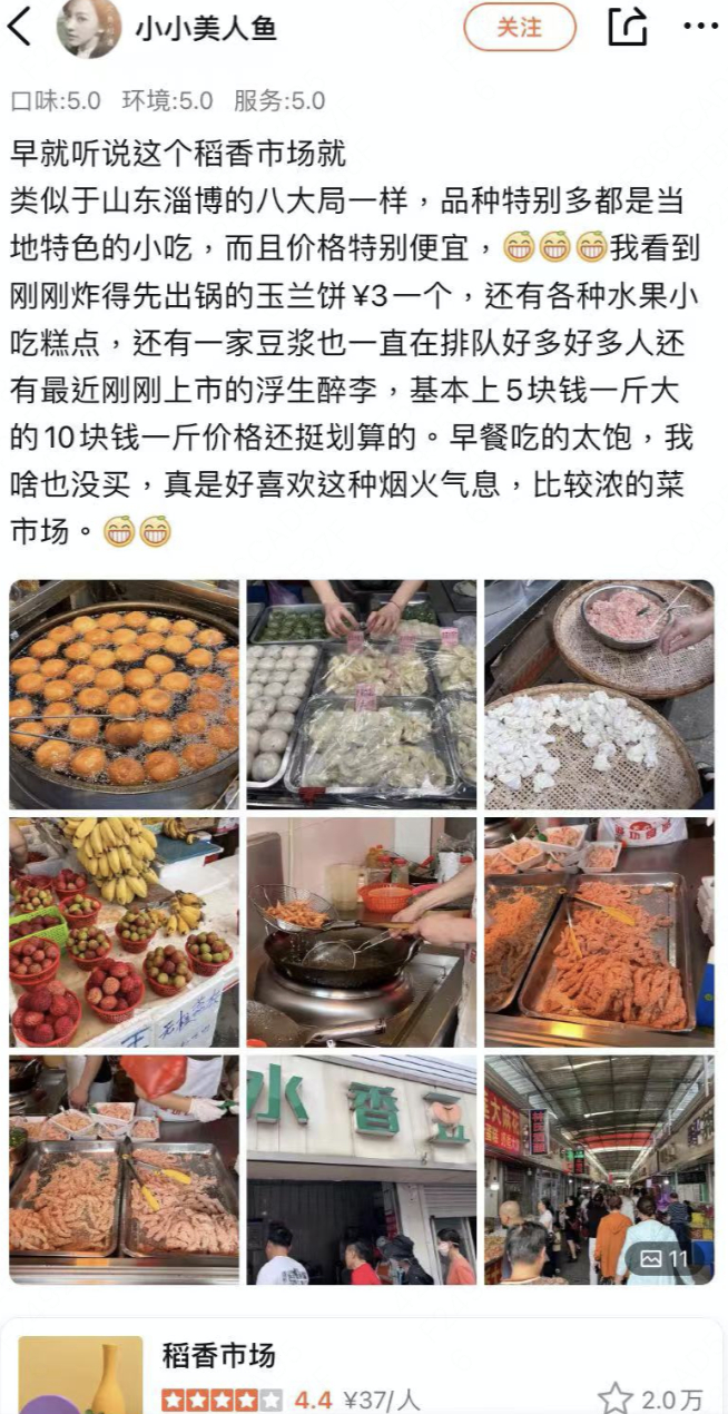 ▲大众点评上的菜市场City Walk实录。(图源:大众点评)