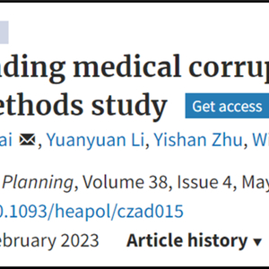 巧的是2023年2月学术期刊《Health Policy and Planning》上发表了一篇中国与美国研究人员合作的论文Understanding medical corruption in China: a mixed-methods study,用多种方式收集数据分析当下中国的医疗腐败问题。