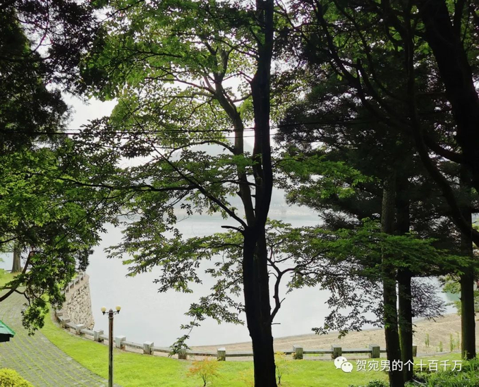 当年毛泽东游泳之处被围了起来,隔着铁丝网拍了张照