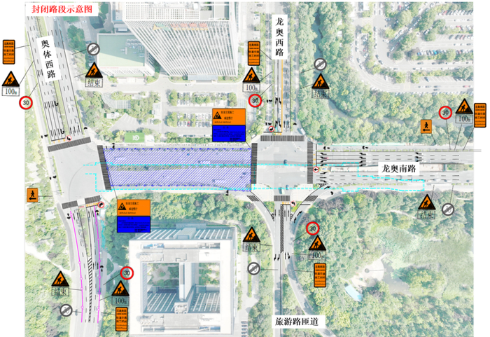 本次主要实施车站主体结构及盾构区间施工,届时对龙奥南路(奥体西路至龙奥西路段)机动车道实施全封闭,行人及非机动车沿围挡两侧正常通行。期间,奥体西路与龙奥南路交叉口北口禁止左转但允许调头,南口禁止右转,龙奥西路与龙奥南路交叉口东口禁止直行,北口禁止右转,南口禁止左转。