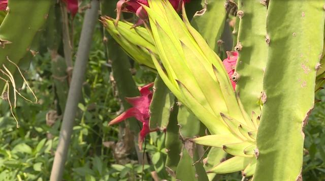火龙果属于仙人掌科,不仅藤蔓上有刺,其花开更是犹如“昙花一现”,仅在夜间盛放。“晚上十点之后它会慢慢盛开,到早上四五点又合上,经过授粉后就会结果。”邵敏是上海钱忠村火龙果基地负责人,她指着一株青绿色的火龙果介绍道,“开花后,上半部分会枯掉,过五六天就要把它扯下来,不然会影响生长。”