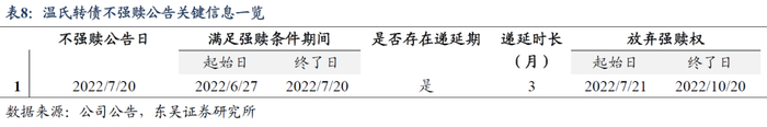 (1)强赎风险:发行人发动强赎将导致溢价率的快速压缩,以及潜在正股价格在遭遇转股后抛盘的下行压力,双重因素或对转债价格产生明显的下压;