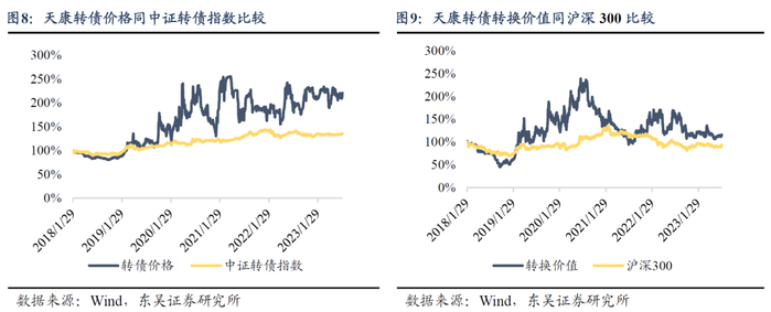 天康转债于2018年1月29日上市交易,初始发行规模10亿元。截至2023年8月1日,天康转债债项评级为AA级。2021年12月22日进入回售期,当前存续期0.39年,余额规模为0.79亿元,未转股比例仅有7.9%。