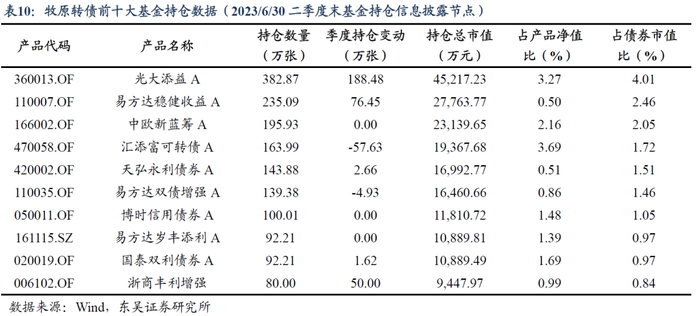 从机构持仓占比情况来看,截至2023Q2,机构持仓牧原转债38.61亿元,较2023Q1环比减少4.55%,占牧原转债存续市值的34.26%,占比较高,因而机构投资者对转债定价或产生一定扰动。