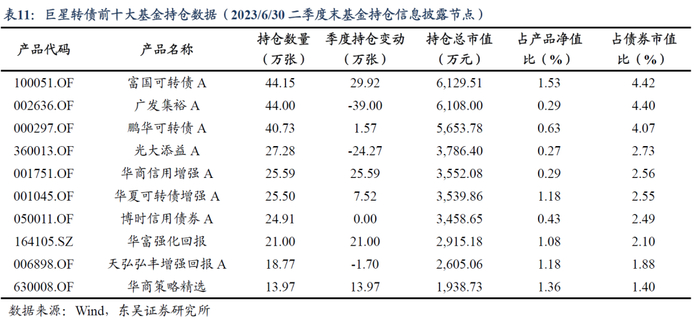 从机构持仓占比情况来看,截至2023Q2,机构持仓巨星转债8.80亿元,较2023Q1环比增长10.57%,关注度进一步提升,占巨星转债存续市值的63.43%,占比较高,因而机构投资者对转债定价或产生较大扰动。