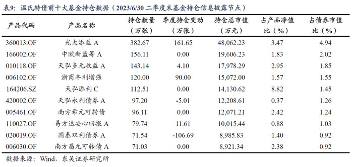 从机构持仓占比情况来看,截至2023Q2,机构持仓温氏转债40.60亿元,较2023Q1环比下降7.28%,占温氏转债存续市值的31.33%,关注度回落。