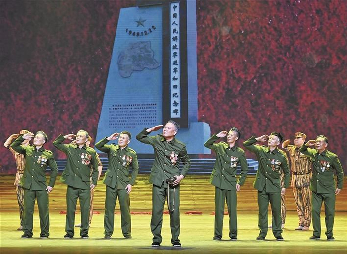 没有拖拉机,用坎土曼也能挥舞出一片片绿洲;没有做饭用的锅,用青石板也能烙出香喷喷的大饼;没有鲜花和新房,地窝子里也能孕育出浪漫的爱情……8月1日,由兵团歌舞剧团倾情打造的舞蹈诗剧《老兵故事》,在兵团文化艺术中心演艺大厦剧场上演,通过一个个感人至深的红色故事,向观众再现了兵团那段激情燃烧的岁月,展示着兵团人对祖国炽热深沉的爱。