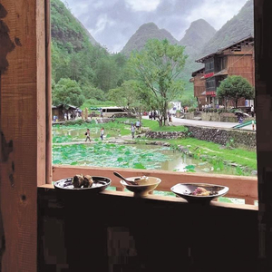 在尧古村,一间间村舍,被改造成扎染展示厅、造纸坊、酿酒坊,游客们可以在其中研学互动。五百穗种子主题研学餐厅不要错过,在这可以品尝黑糯米与腊肉制成的布依族寿司,像布丁一样诱人的百香果鸡蛋杯,充满设计感的菜肴。