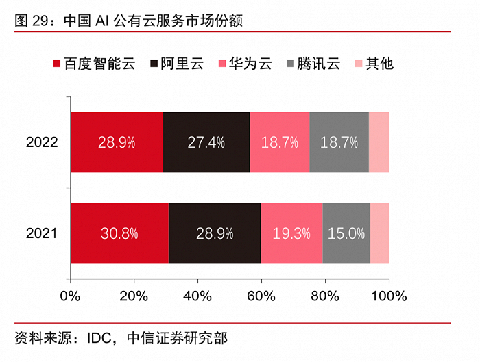 IDC报告分析认为,生成式AI、大模型的落地正处于研发起步阶段,这些能力在公有云上能看到更快速的更新迭代,短期内将为AI公有云服务带来明显利好。