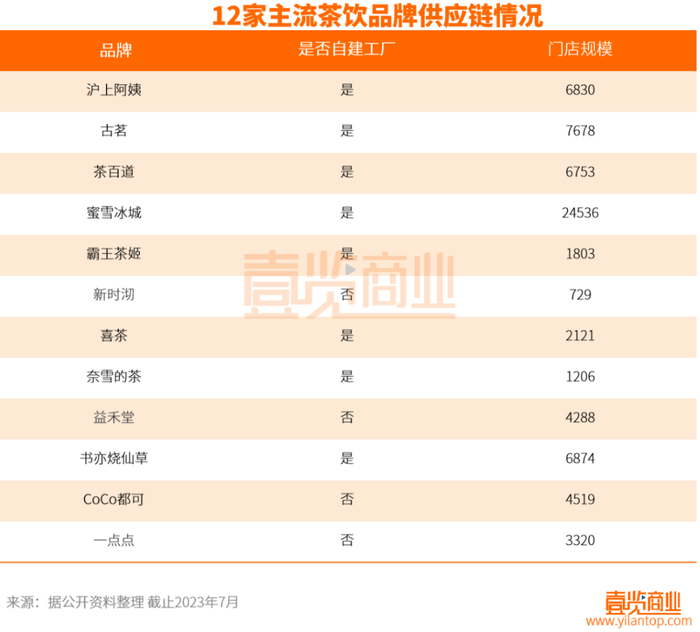 12家头部茶饮品牌中共有8家企业进行了供应链建设占。其中,门店数量达到5000以上的品牌全部都开始了供应链建设,供应链已成为茶饮品牌的标配。