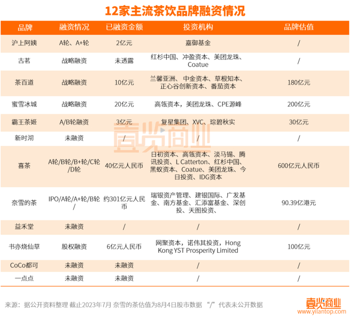 12个品牌总共拥有18次融资,32个国内外投资机构参与,融资金额累计超过382亿元,品牌总估值人民币超过1203亿元。