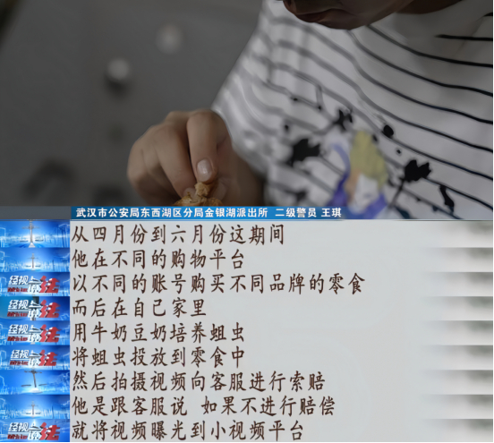 原来,黄某“栽赃式维权”的灵感源于一次网购经历,黄某拿到赔偿款以后,动起了歪心思,他觉得这不失为一个来钱的路子。于是,他开始一次次伪造食品长虫变质等情况,向商家投诉,索要赔偿。