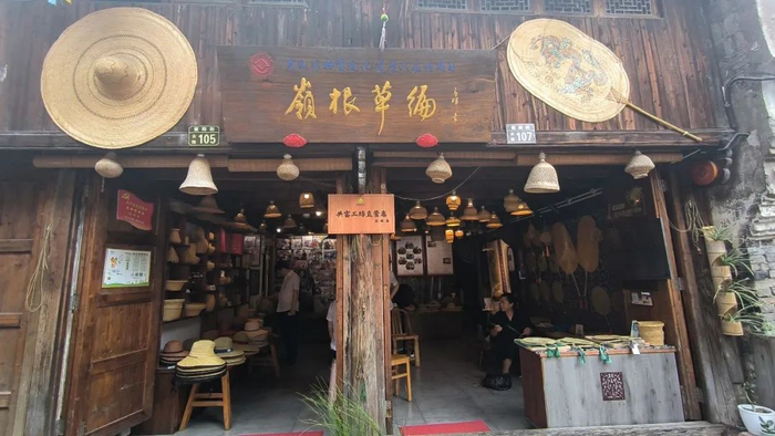 走进位于临海古城紫阳街的岭根草编共富工坊直营店,各式各样的草帽、蒲扇、工艺品等产品,做工精美,又不失实用。岭根草编是浙江省第四批非物质文化遗产名录,以“灯芯草”为原料,工艺有手工拧、缠、勾、编、钉、织等十几道编工序,其第四代传承人在紫阳街敲开了非遗传承的大门,结合临海特色文化,将现代工艺美术的表现形式和传统的编织手法相结合,创作富含时尚元素、符合消费需求的草编实物。