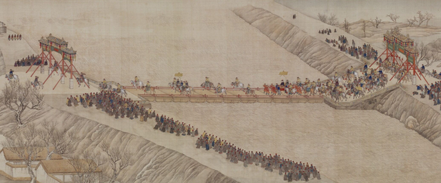 乾隆南巡图卷第二卷/过德州中的浮桥 清·徐扬 加拿大阿尔伯塔大学博物馆