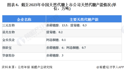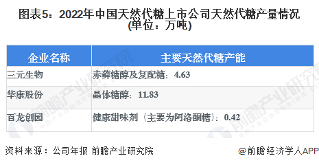 本文核心数据:天然代糖种类;中国天然代糖上市公司天然代糖产能;中国天然代糖上市公司天然代糖产量