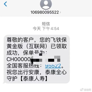 消费者小张称自己并未投保,与泰康人寿也没有任何业务往来,突然收到短信称,“飞铁保”已领取成功,并有保单号。对于泰康人寿如何获取的个人信息,又是如何未经本人同意就投保成功的,小张对此产生了疑惑。