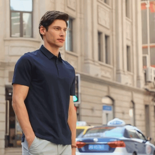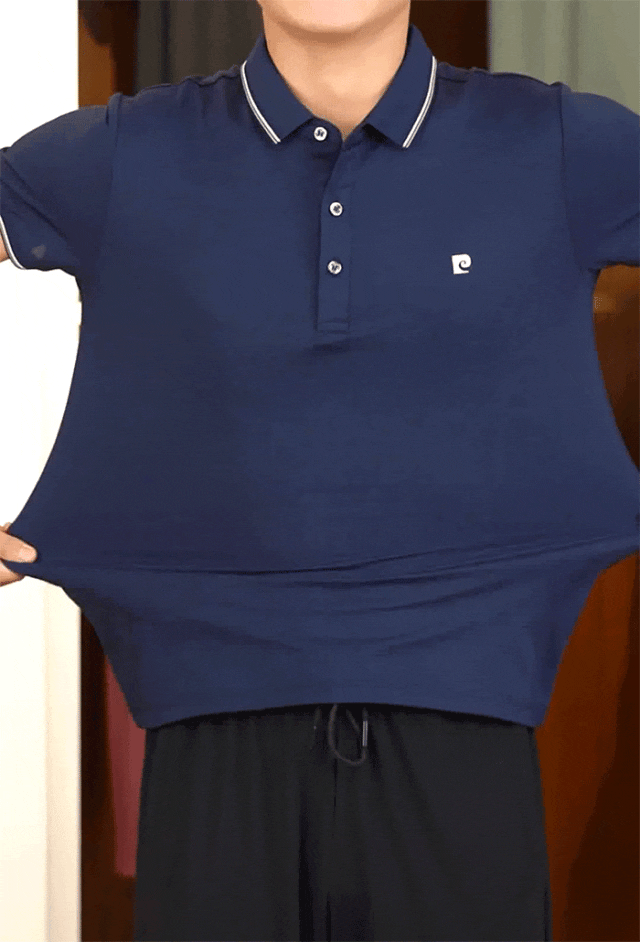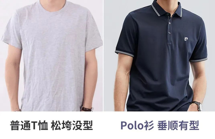 皮尔卡丹POLO衫立体剪裁+垂顺面料,不易皱不易变形,比T恤更有型更绅士,还能遮盖一点小肚腩。