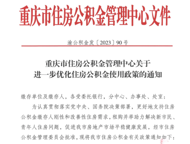 8月11日,重庆市住房公积金管理中心发布《关于进一步优化住房公积金使用政策的通知》。