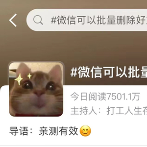 近日,#微信可以批量删除好友#的话题引发关注,网友表示“亲测有效”。