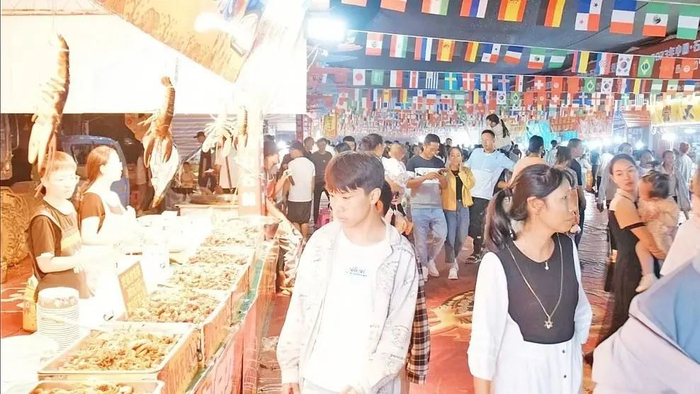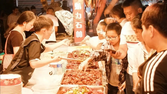 购物美食节现场,人流如织,热闹非凡,各式各样的美食摊排成长龙。据了解,本届购物美食节自8月5日持续至13日,共有350户商家参展,涵盖国内特色名小吃、石林本地美食、云南高原特色农特产品、石林特色伴手礼等商品,为当地居民和游客带来了一场美食盛宴。