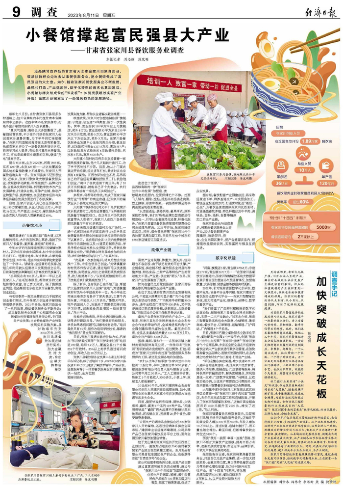 地处陕甘交界处的甘肃省天水市张家川回族自治县,鼓励扶持群众走出去从事餐饮服务业,把小餐馆做成了富民强县的大生意。如今,随着张家川餐饮服务业不断发展,品牌化打造、产业链延伸、数字化转型的需求也更加迫切。小餐馆怎样突破成长的“天花板”?如何提质增效实现产业升级?张家川县探索出了一条独具特色的发展路径。
