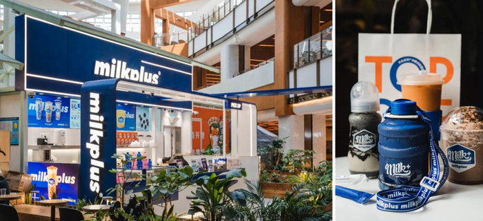 milkplus,主打蓝白极简风,克莱因蓝视觉冲击力强。从泰式奶茶的品种创新,到时髦抢镜的杯型包装,milkplus吸引眼球的本事不小。如满杯奶冻阿华田,采用可循环使用的电光蓝水桶为容器,是出片必备、炸街单品、最潮水桶。从广州走出上海,上海有5家门店,也已进驻深圳、佛山。
