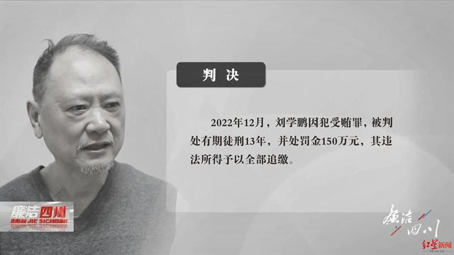 直到最后,刘学鹏终于明白,逾越纪法“红线”得来的所谓“繁花似锦”终究不过是“过眼云烟”,处心积虑贪来的不义之财也不过是“镜花水月”。2022年8月,刘学鹏因严重违反党的纪律,构成职务违法并涉嫌受贿犯罪,被开除党籍并被取消享受的待遇。2022年12月,刘学鹏因犯受贿罪,被判处有期徒刑13年,并处罚金150万元,其违法所得予以全部追缴。