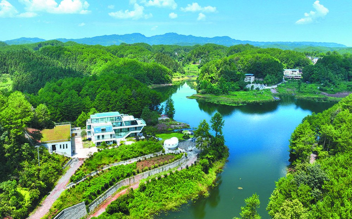 金龙湖畔的“不知山外”生态民宿,犹如置身世外桃源。